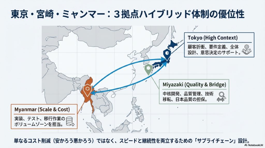 東京・宮崎・ミャンマー:3拠点ハイブリッド体制の強み